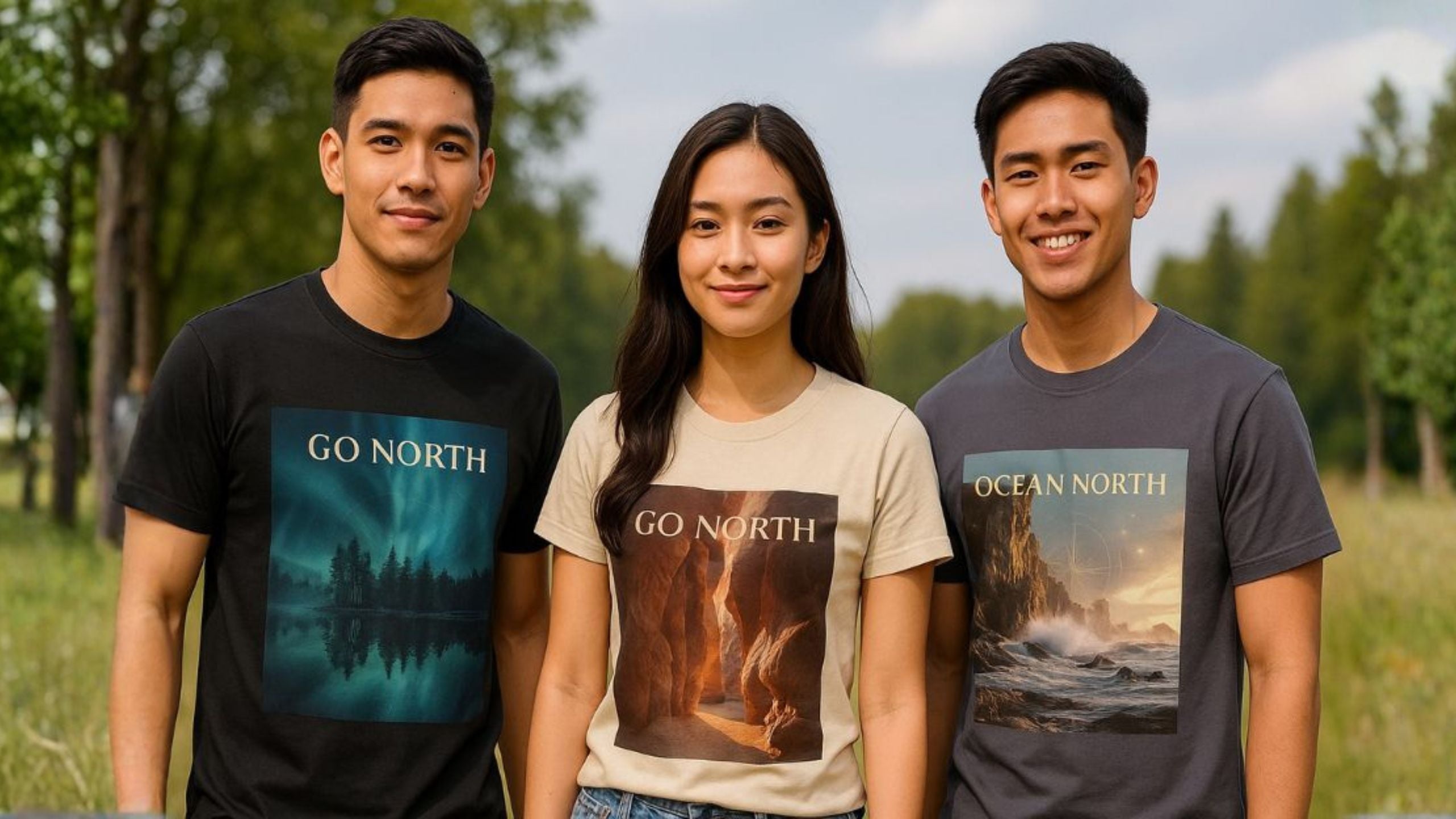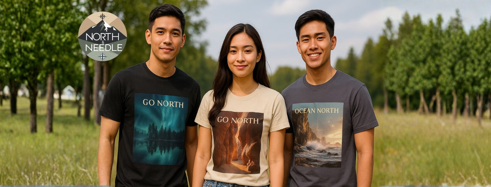 Aurora Horizon T-Shirt – Go North Northern Lights Pine Forest Tee